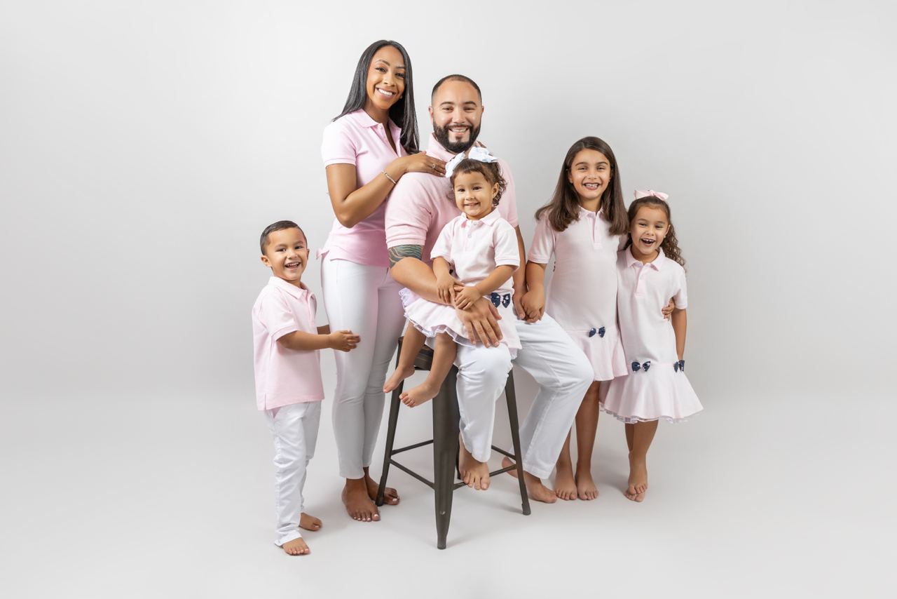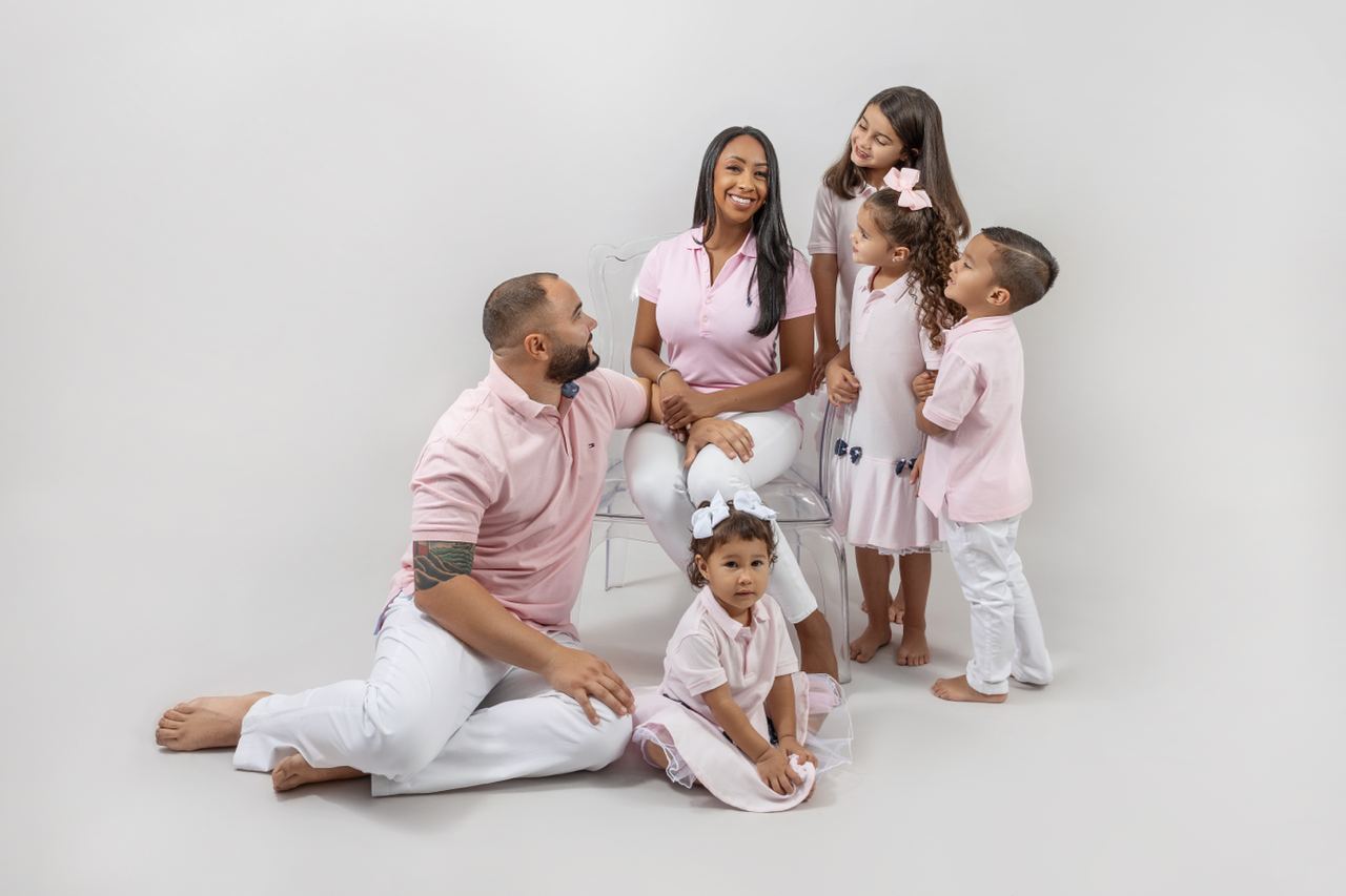 In these family photo shoots, the delicate use of light colors creates a soft and cohesive look, enhancing the familial warmth captured in each frame.