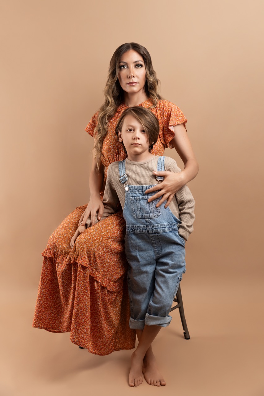 Mother and son portrait studio photo session